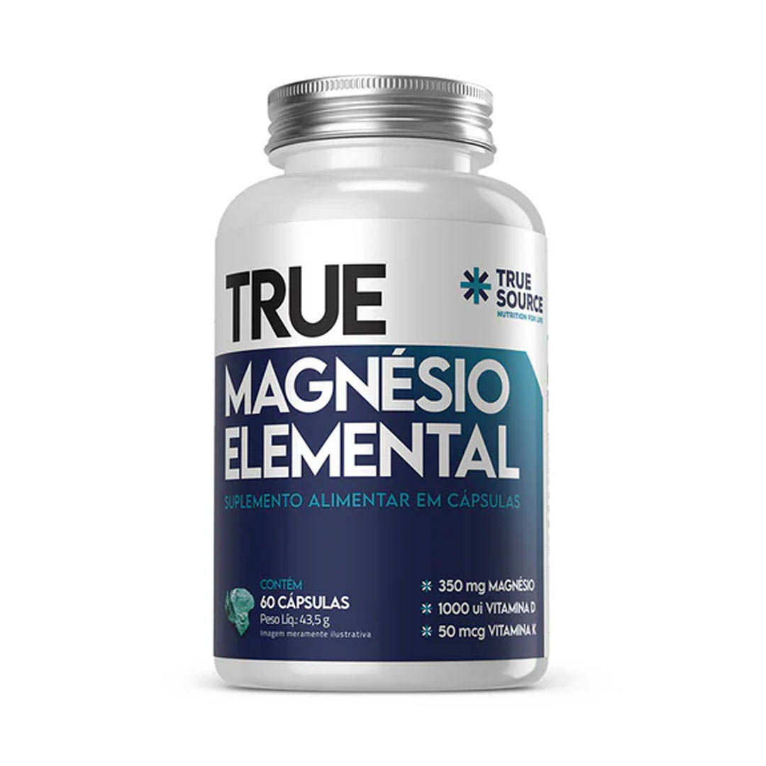 O True Magnésio Elemental entrega 350 mg de magnésio elementar, junto com vitamina D3 e vitamina K2, numa fórmula pensada para o cuidado do corpo num todo. O magnésio entra ajudando em funções básicas como energia e músculos, a vitamina D3 dá força na absorção e a K2 complementa cuidando da saúde óssea, ajudando o cálcio a ir para onde realmente importa.