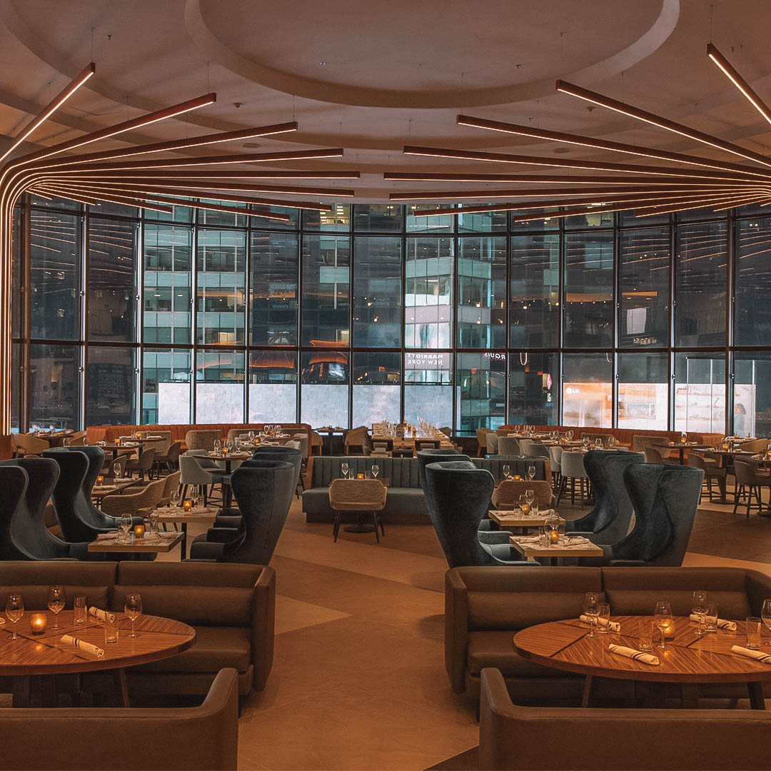 Recém reinaugurado e no 47º andar do hotel, tem vista panorâmica e ceia especial a partir de US$ 1 280 para adultos, que começa com um coquetel seguido de um jantar e um show animado (mas, ali de cima, não dá para enxergar a bola descer).
