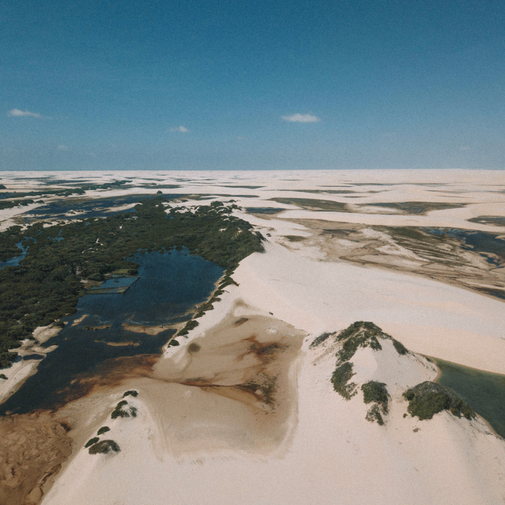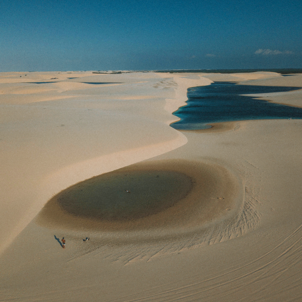 Lagoas pequenas, lagoas enormes, lagoas azuis, lagoas infintas, lagoas cristalinas, de todos os formatos, de todos os tipos, para todos os gostos. Sabe aquela imagem aérea dos Lençóis que lembra um tapete infinito de dunas e lagoas? Pois é, essa é a representação exata da porção do parque nacional na região de Santo Amaro. Pra onde você olha tem lagoa, uma que cativa mais que a outra. É que Santo Amaro do Maranhão está localizada 1) literalmente aos pés das dunas, muito próxima ao burburinho de lagoas e 2) na área do parque em que o lençol freático está mais ativo, mantendo lagoas maiores, mais profundas e mais cheias por todo lado.